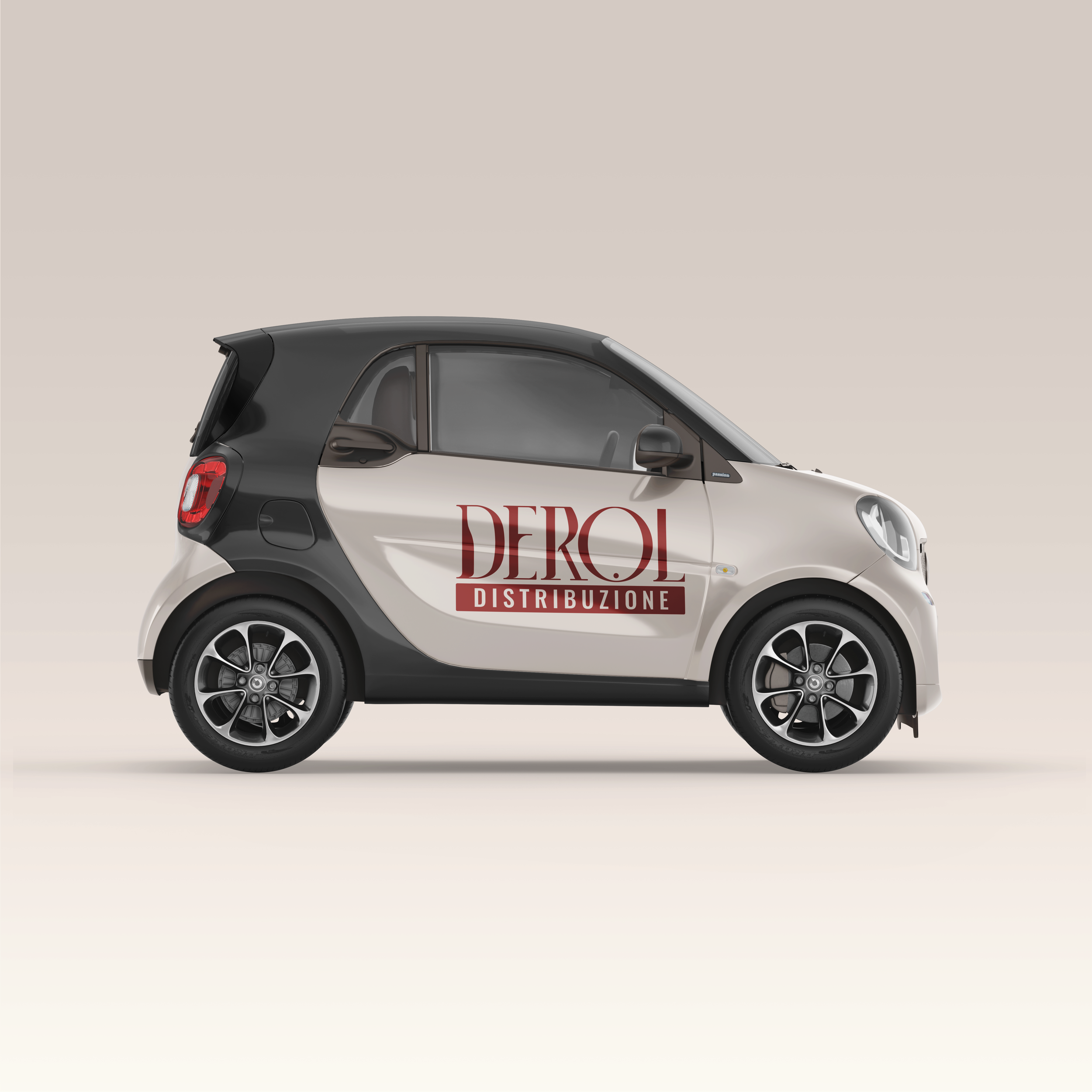 Le logotype DEROL est composé de lettres dessinées sur mesure, inspirées de l’élégance des typographies serif de style Didone. La mention « distribuzione », en revanche, repose sur une typographie sans serif, créant ainsi un contraste harmonieux et un équilibre visuel maîtrisé.